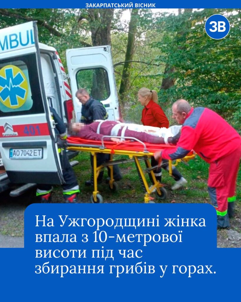 Від села Дубриничі жінку вже автомобілем швидкої доправили до Ужгородської міської багатопрофільної клінічної лікарні. За словами медиків, у пацієнтки — перелом стегна, однак інших серйозних травм вона уникла.